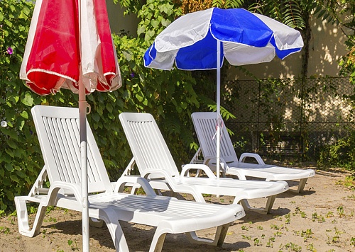 В теплое время года можно принимать солнечные ванны в природном солярии. Для этого предусмотрен небольшой, огороженный живой изгородью участок с удобными шезлонгами и зонтиками.