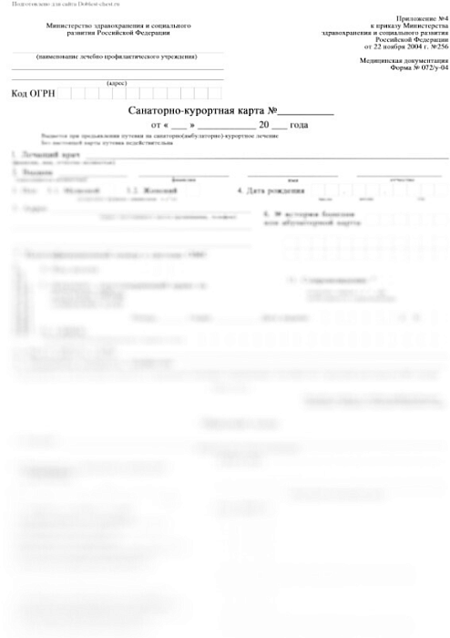 Санаторно-курортная карта для взрослых форма 072/у-04
