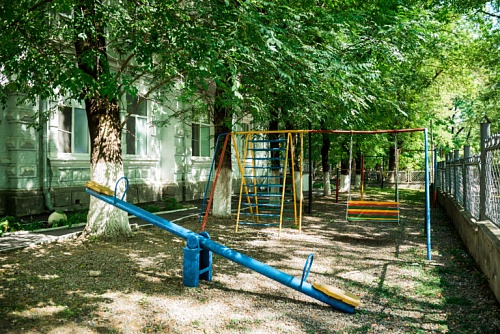 Детям тоже найдется, чем заняться, ведь во дворе есть детская площадка с качелями.