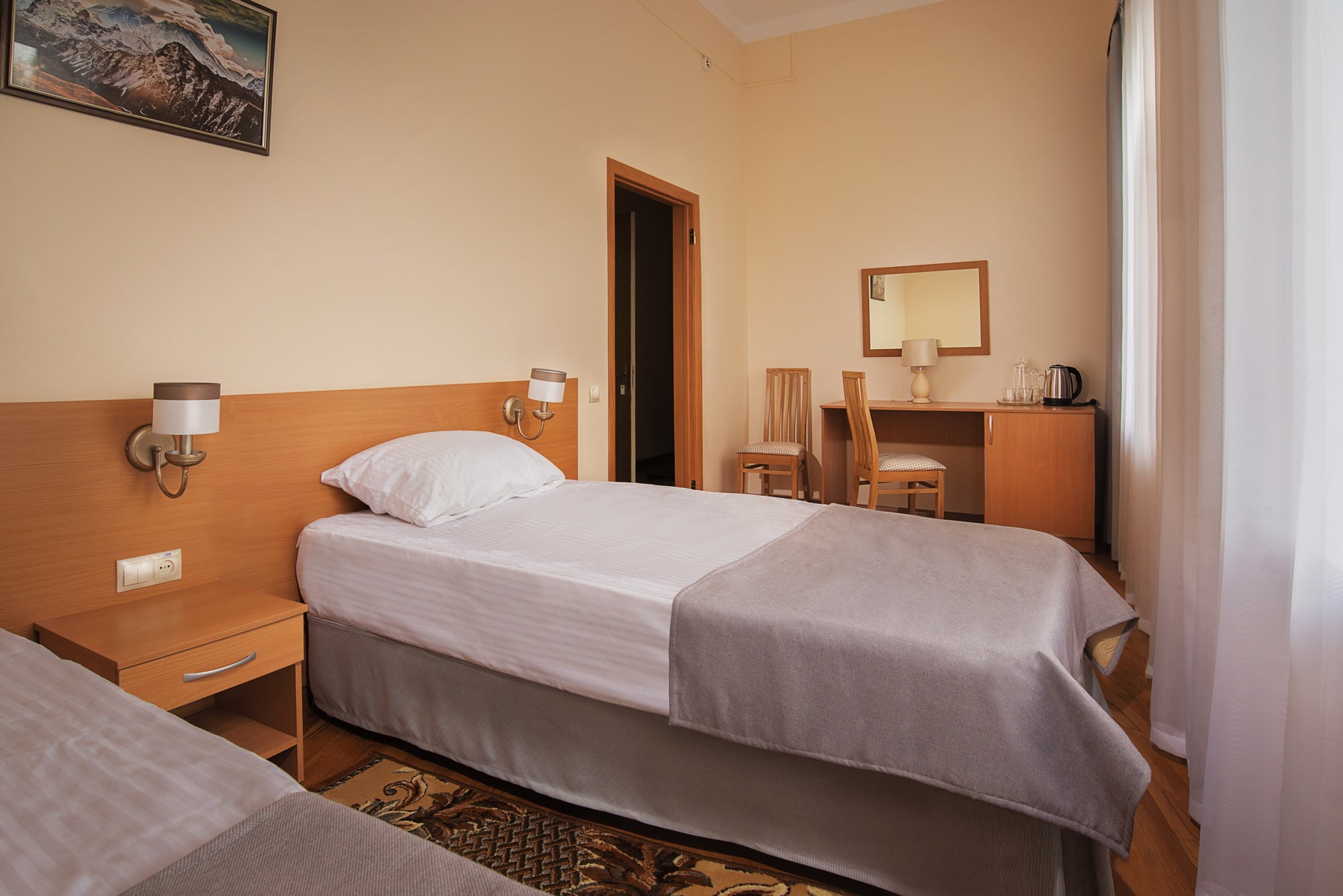 самолетом до аэропорта Минеральные Воды, далее автобусом до железнодорожного вокзала города Минеральные Воды и электропоездом до станции г. Ессентуки, от ж/д вокзала автобус №9, маршрутное такси №9, 21 до остановки «Грязелечебница».